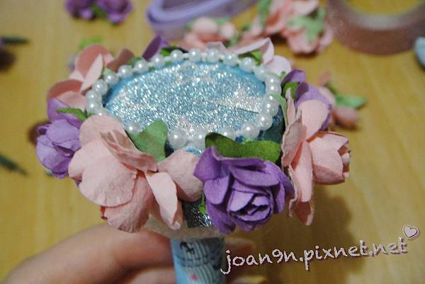 然後補充一下花朵和花朵的中間若洞比較大的我最後用了半圓珍珠片補上