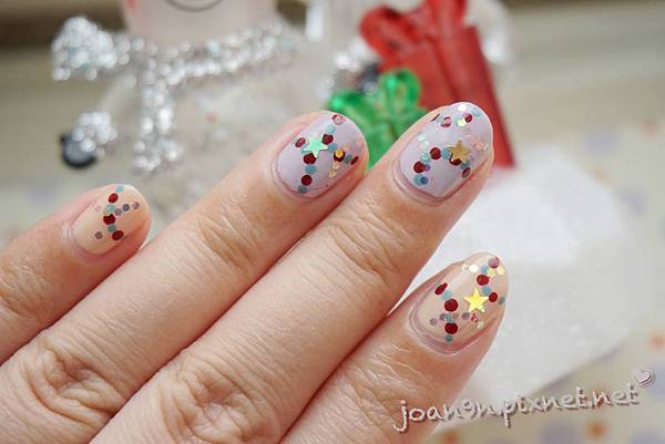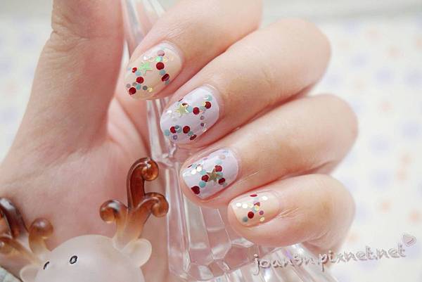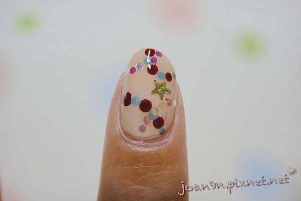 表面點上亮甲油之後把亮片貼上