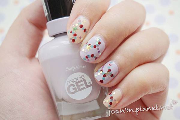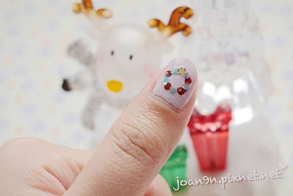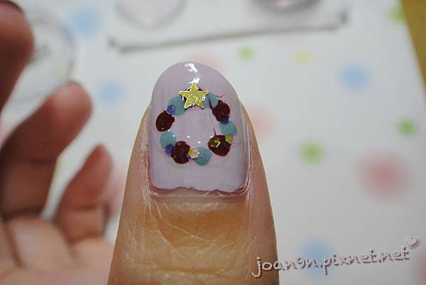 上了亮甲油後用亮片排出另一個花環~
