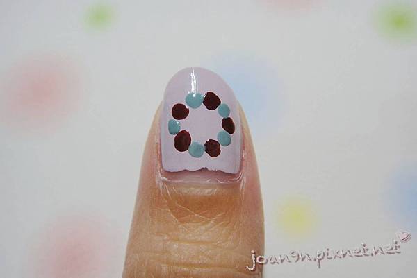接著用點珠筆沾點440酒紅色和290綠色圍成一個圓圈