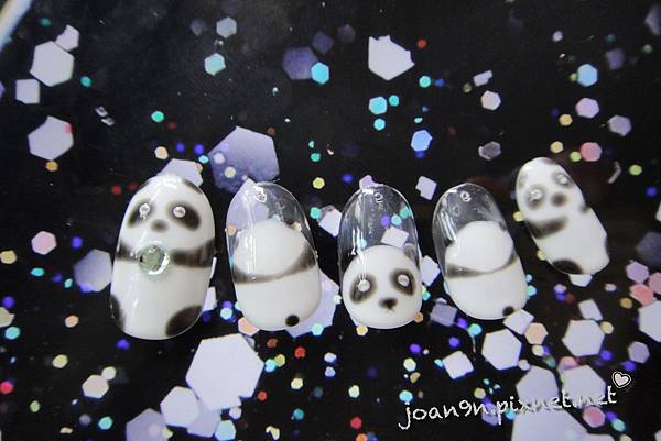 畫上熊貓手~記得上方要畫出弧形才有熊貓頭圓圓的可愛感!!