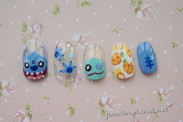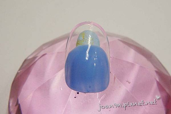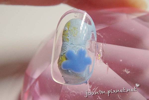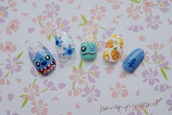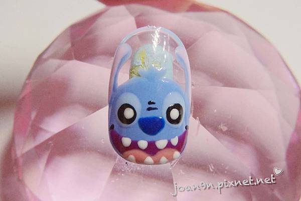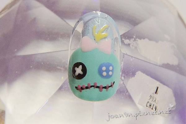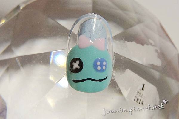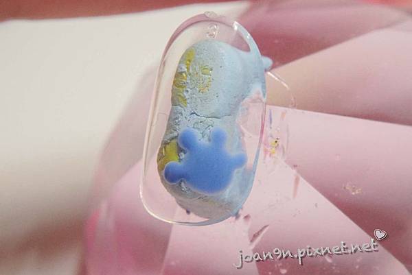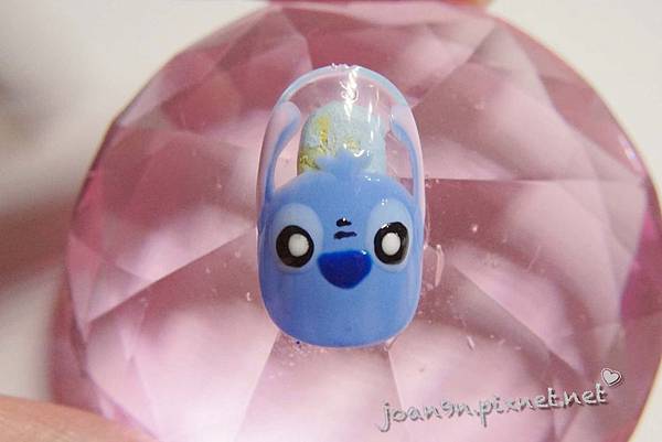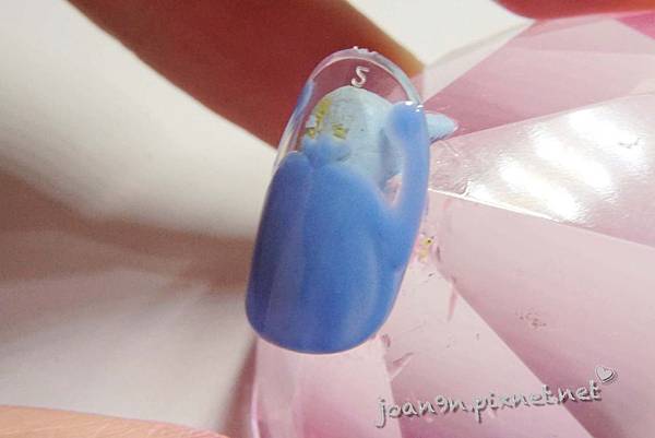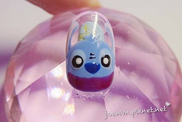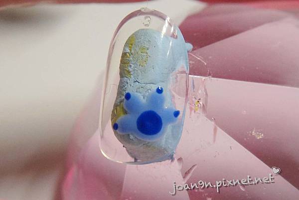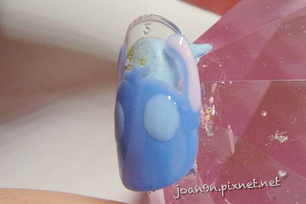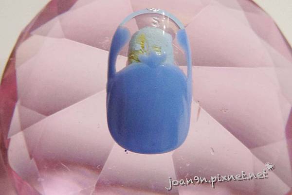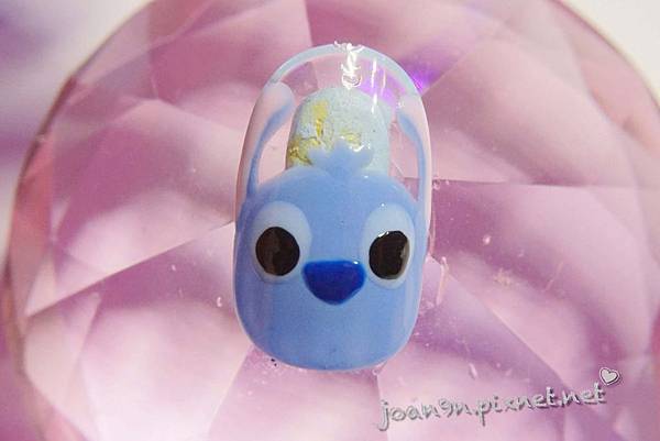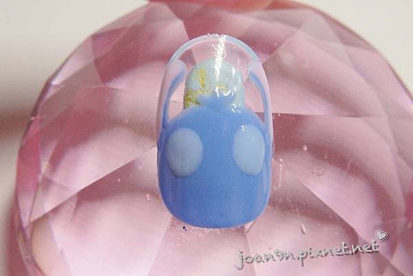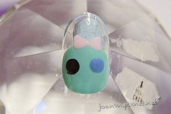 淺藍色畫眼睛,粉紅色蓋在耳朵上