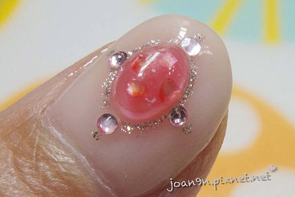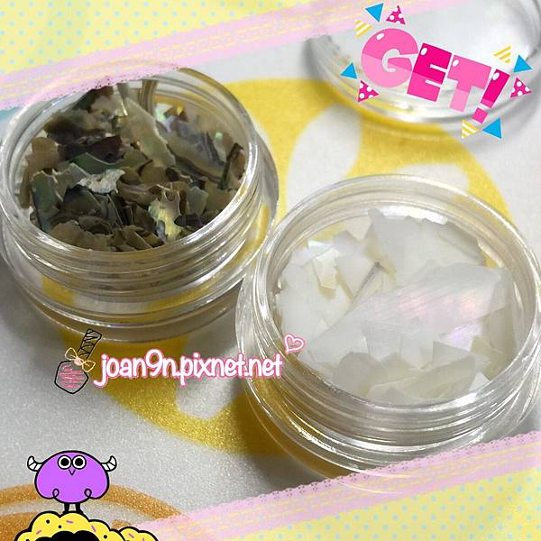 最後一次上色時一併放上剪好的貝殼片和亮粉!