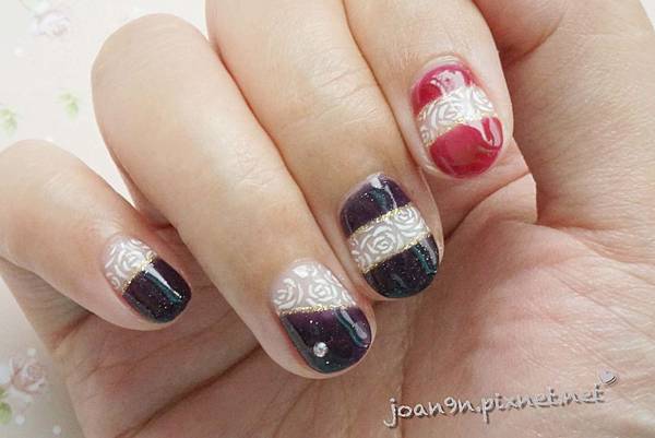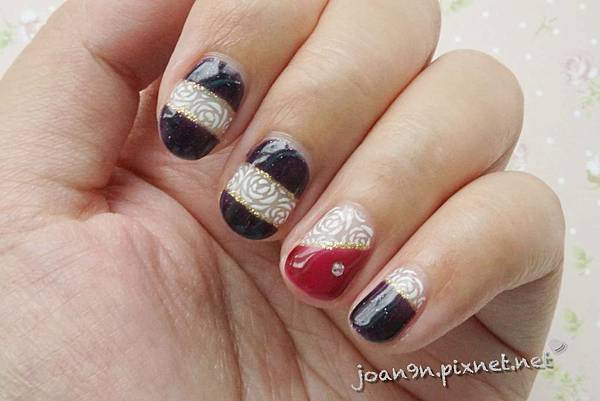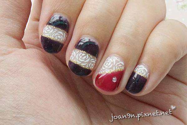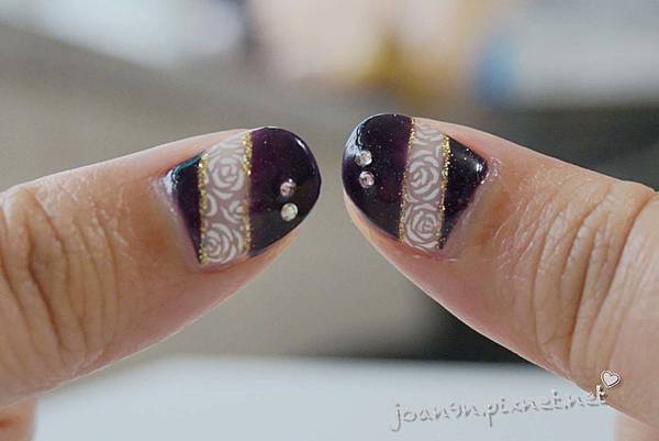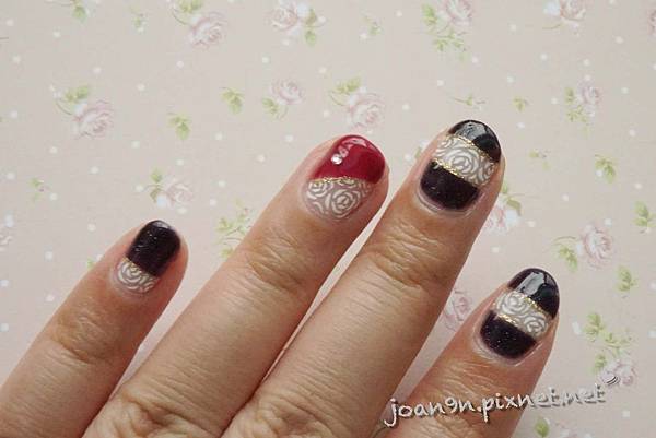 本來中間打算留白,但拉了金線覺得好空才臨時補上玫瑰~