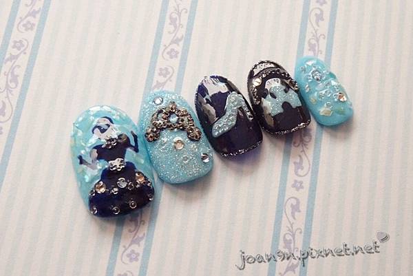 底色水藍色上完照燈之後,疊上一層Shine→照燈