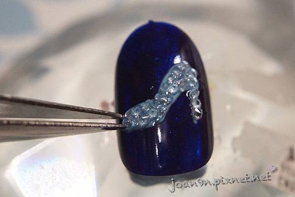 我的做法是用剛剛沾封層膠的點珠筆直接再去黏一球鋯石到甲面上