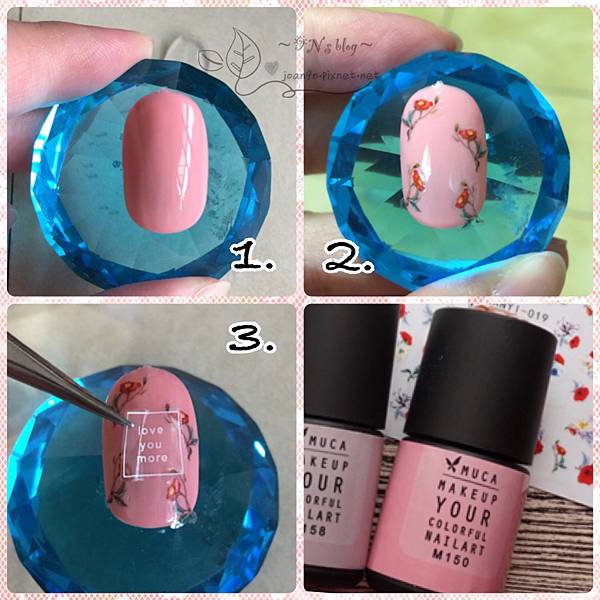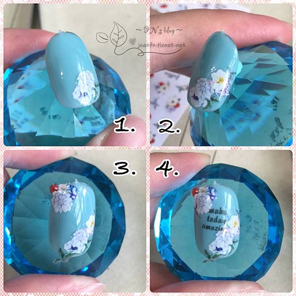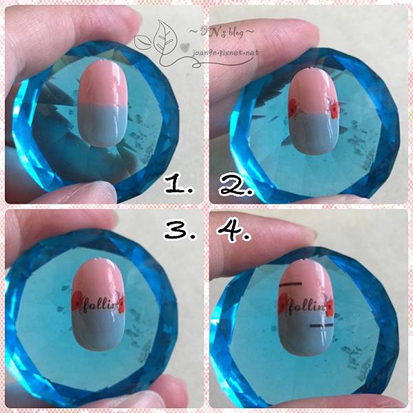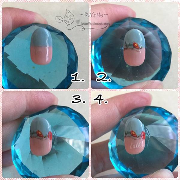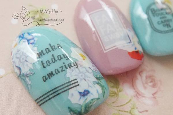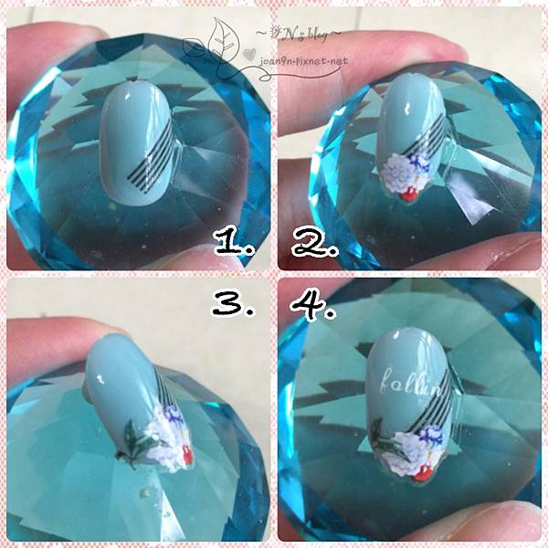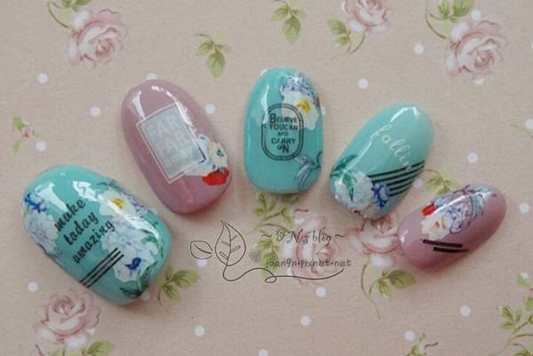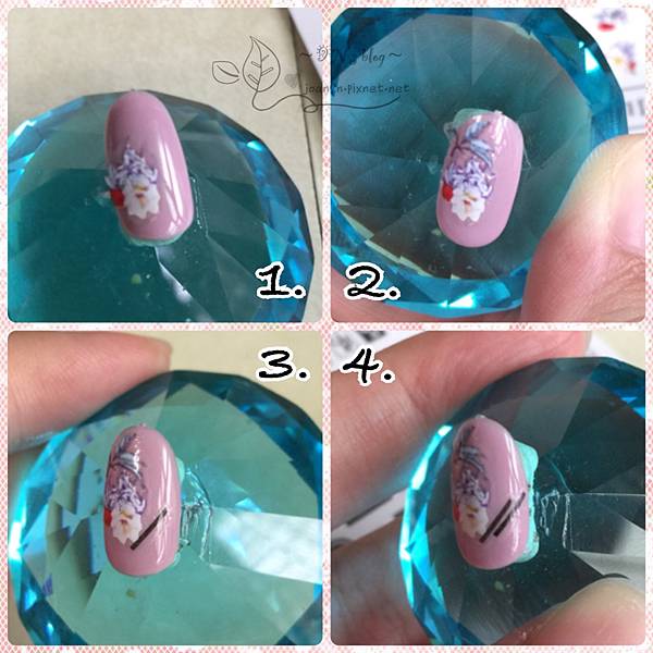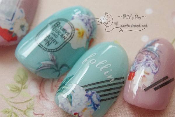 還有個小撇步就是貼紙不要侷限在甲面的範圍上面,貼超出甲面再修掉,成品會更自然好看!