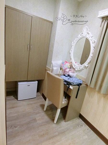 廁所外還有一區是梳妝台和衣櫃、冰箱 (我已經堆滿雜物)