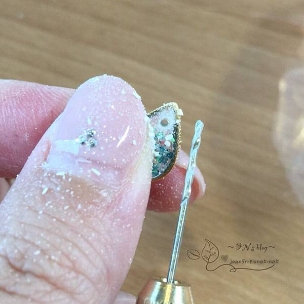 拿出最細的美甲點珠筆來慢慢鋪平底層
