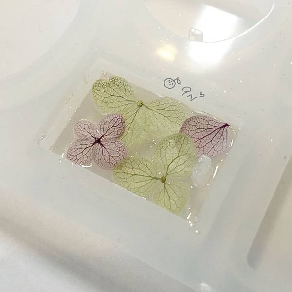 照燈固化後再罐一層,放另一片紫陽花→照燈