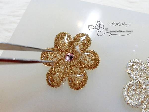 蕾絲花朵、日本Parts Club金屬件、施華洛世奇平底鑽