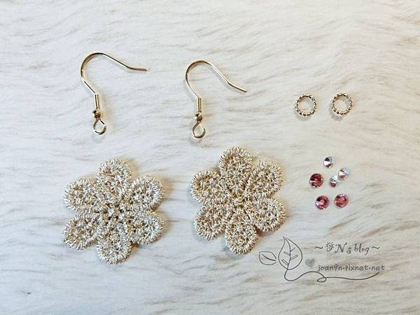 小片的蕾絲花朵可以拿來做成針式耳環哦!!