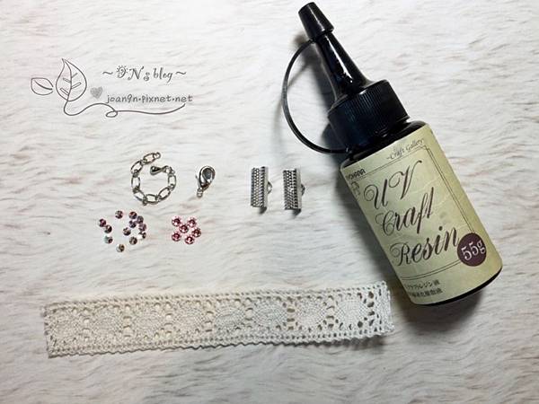 UV膠、蕾絲、日本Parts Club金屬件、施華洛世奇平底鑽