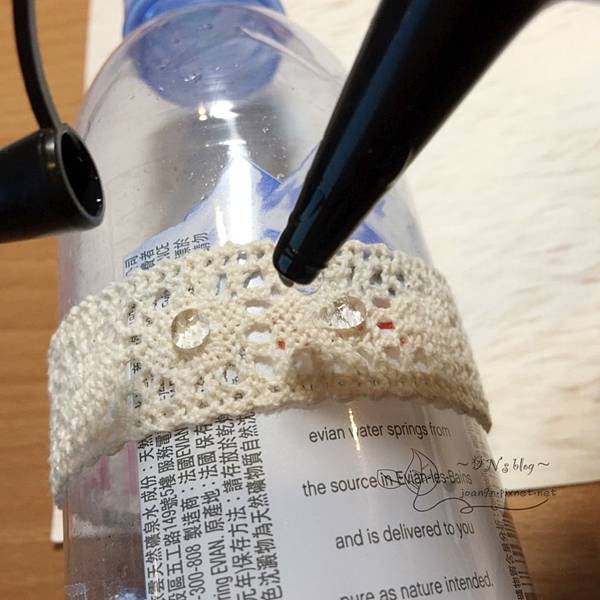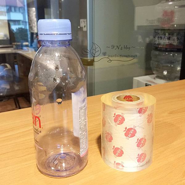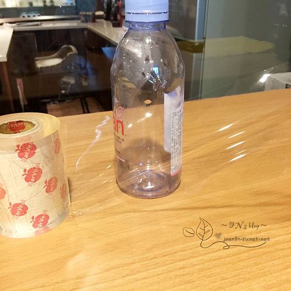 先在保特瓶上包一圈膠膜