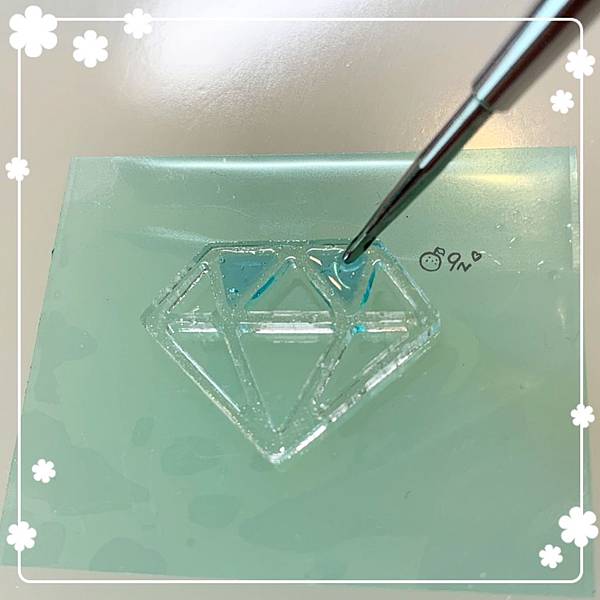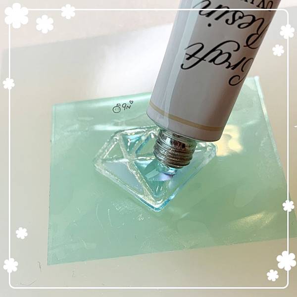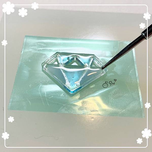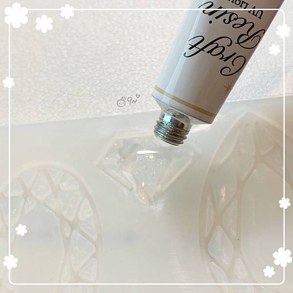拿出大創的亮粉UV膠,直接擠在鑽石模子上