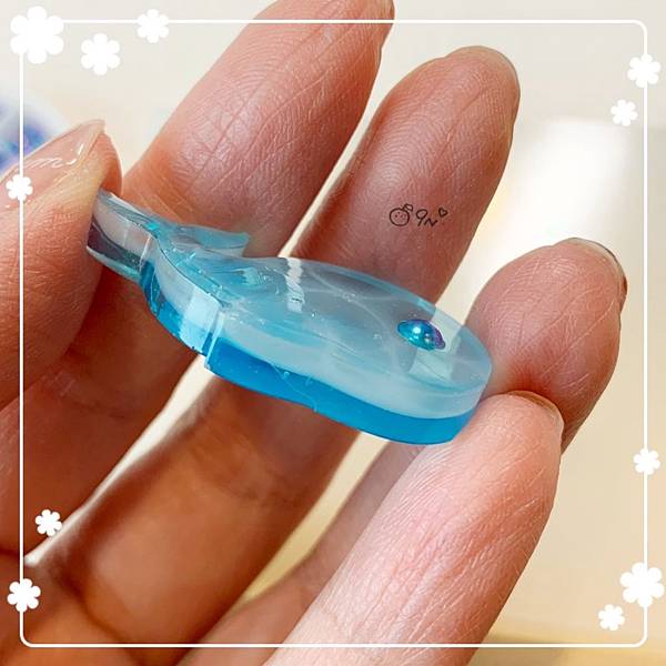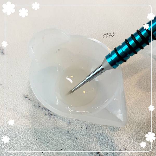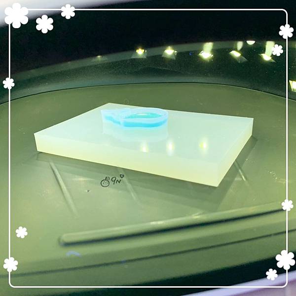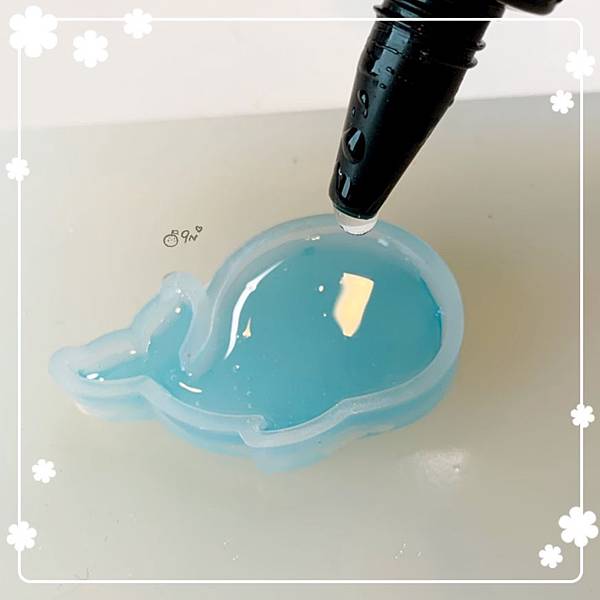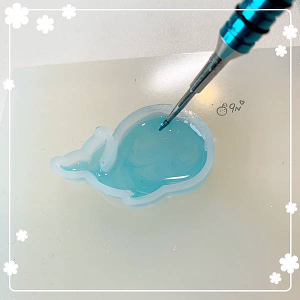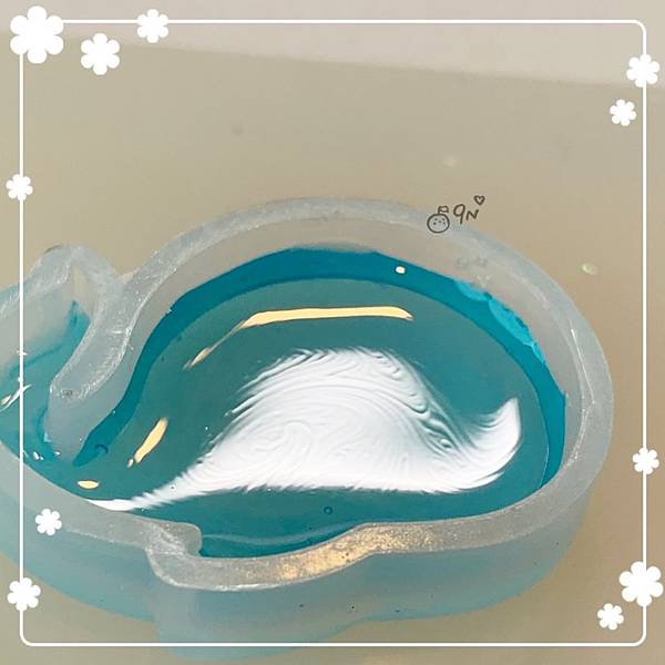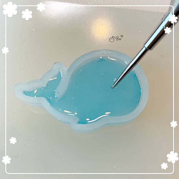 倒入模具裡,這個步驟先不要照燈固化唷!!我們要來製作水波紋了!!!