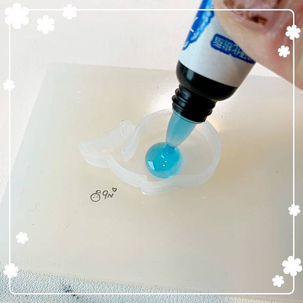 拿出透明uv膠直接一滴一滴的擠進模具裡