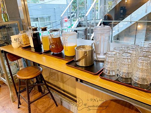 餐廳櫃台有一位日本大叔很親切的核對完資料後就叫我們隨便取用~