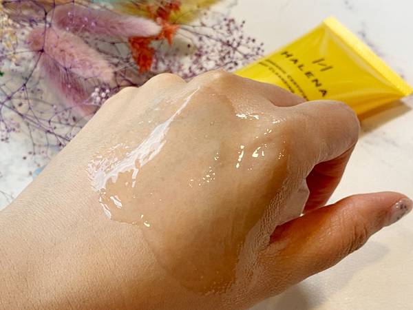 再用HALENA溫感潔顏凝膠洗臉配合臉部按摩