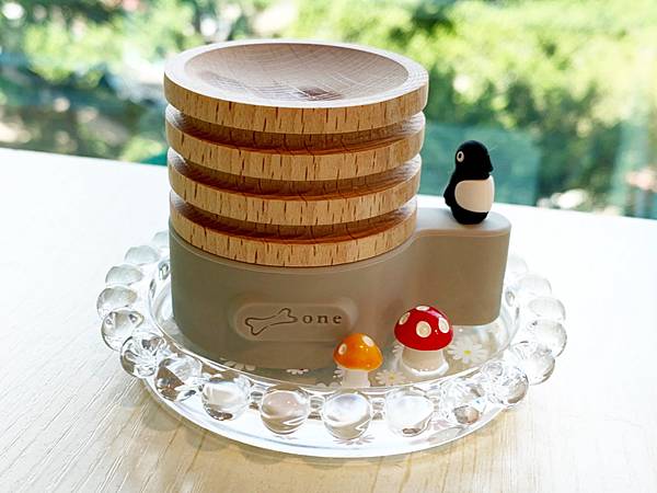 隔天來上班原木擴香台上也還看的到精油痕跡~