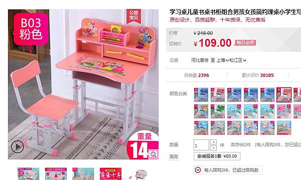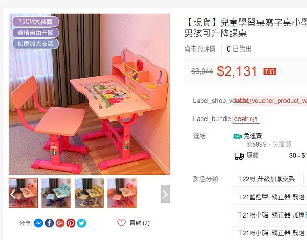 一樣蝦皮搜尋的小朋友書桌2131元