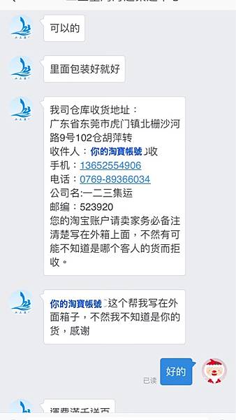 記得淘寶商品的收件資料要填上一二三集運的資料唷~