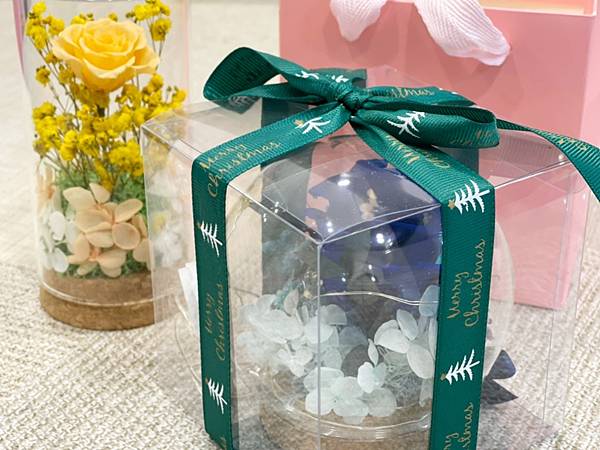 由玫瑰、尤加利葉、滿天星等組成的玻璃球擺飾超級精緻的!!